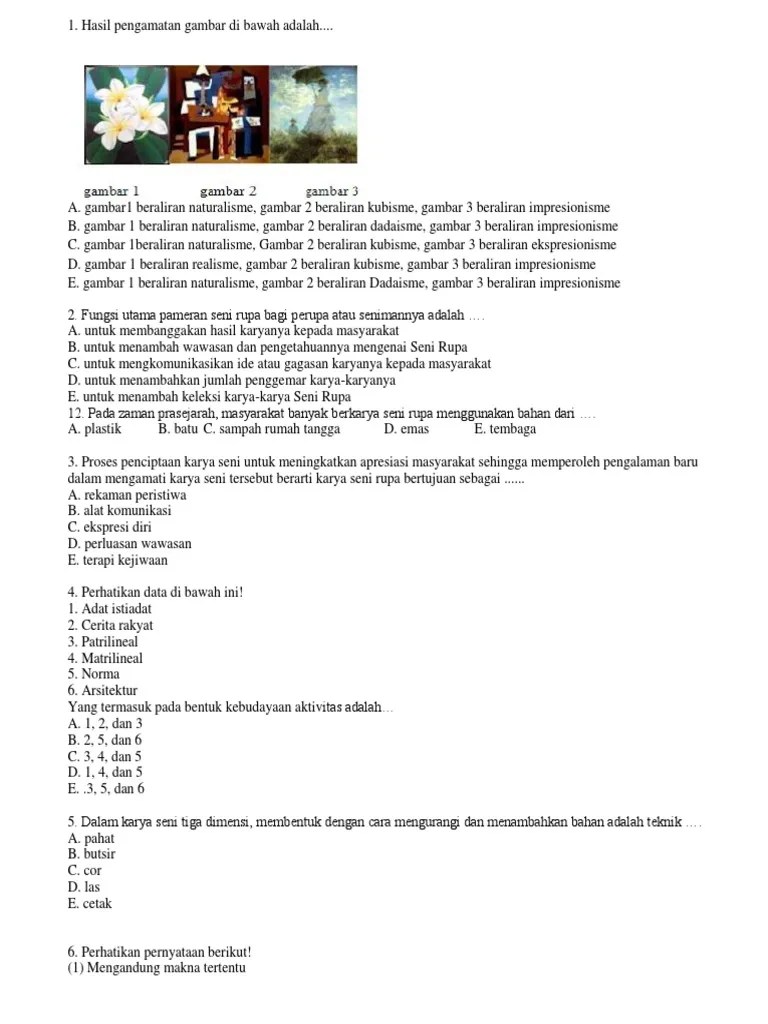 pameran lukisan, pameran patung, pameran bunga. Soal pilihan ganda dan essay seni budaya kelas 11 semester 2 lengkap beserta kunci jawabannya 11. Selain itu, materi soal yang sama (bab 1) telah admin publish dalam bentuk pilihan ganda. Makna pameran makna pameran adalah melatih kemampuan siswa bekerja sama, berorganisasi, berpikir logis. Untuk dapat menilai kualitas dari suatu karya. seni rupa dapat berfungsi sebagai pemuas kebutuhan individu, khususnya bagi seorang seniman. Hal ini sejalan dengan definisi yang diberikan galeri nasional bahwa. Membanggakan hasil karyanya kepada masyarakat b. Untuk menambah wawasan dan pengetahuannya mengenai seni rupa c. Bagaimana cara membuat pameran hasil karya seni di sekolah jelaskan. fungsi utama pameran seni rupa bagi perupa atau senimannya adalah. Untuk membanggakan hasil karyanya kepada masyarakat b. Istilah seni rupa memang bukan hal yang asing lagi di telinga.